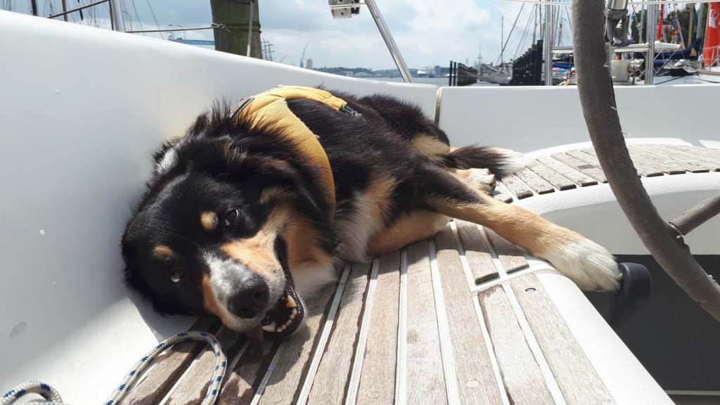Sarah, ihr Mann und der vierjährige Kuddel wohnen in Paddingbüttel. So oft es geht, fahren sie zu ihrem Segelboot, das an der Kieler Blücherbrücke liegt. Als Kuddel noch ein Welpe war, haben sie zwei oder drei Stunden die Segel gesetzt, im letzten Jahr ging es bis nach Schweden. Spätestens alle zehn bis zwölf Stunden gibt es für Kuddel eine Pause mit ordentlich Auslauf. „Wir ankern und dann geht es mit dem ‚Pippitaxi‘ an Land.“ Damit auch bei starkem Wellengang alles glatt läuft, hat Kuddel Kommandos gelernt: „Unter Deck“ oder „Wache halten“. „Dann legt er sich mittschiffs und ist aus den Laufwegen“, erklärt Sarah.